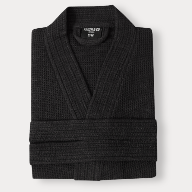 Breng hotelgevoel naar je ochtendroutine met de Badjas Wafel van Fresh and Co. Deze badjas is gemaakt van 50% katoen en 50% microvezel in een stijlvolle wafelstructuur. Lichtgewicht, ademend en heerlijk comfortabel – ideaal voor na het douchen, in de sauna of op vakantie.