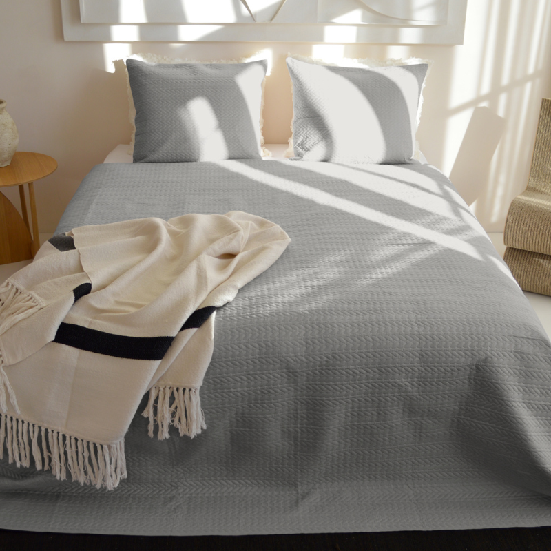 Maak je slaapkamer helemaal af met de Bedsprei Rope. Deze moderne en luxe bedsprei heeft een subtiele glans en een stijlvol, ultrasoon gestikt patroon. Perfect om je bed een chique uitstraling te geven én extra comfort toe te voegen.