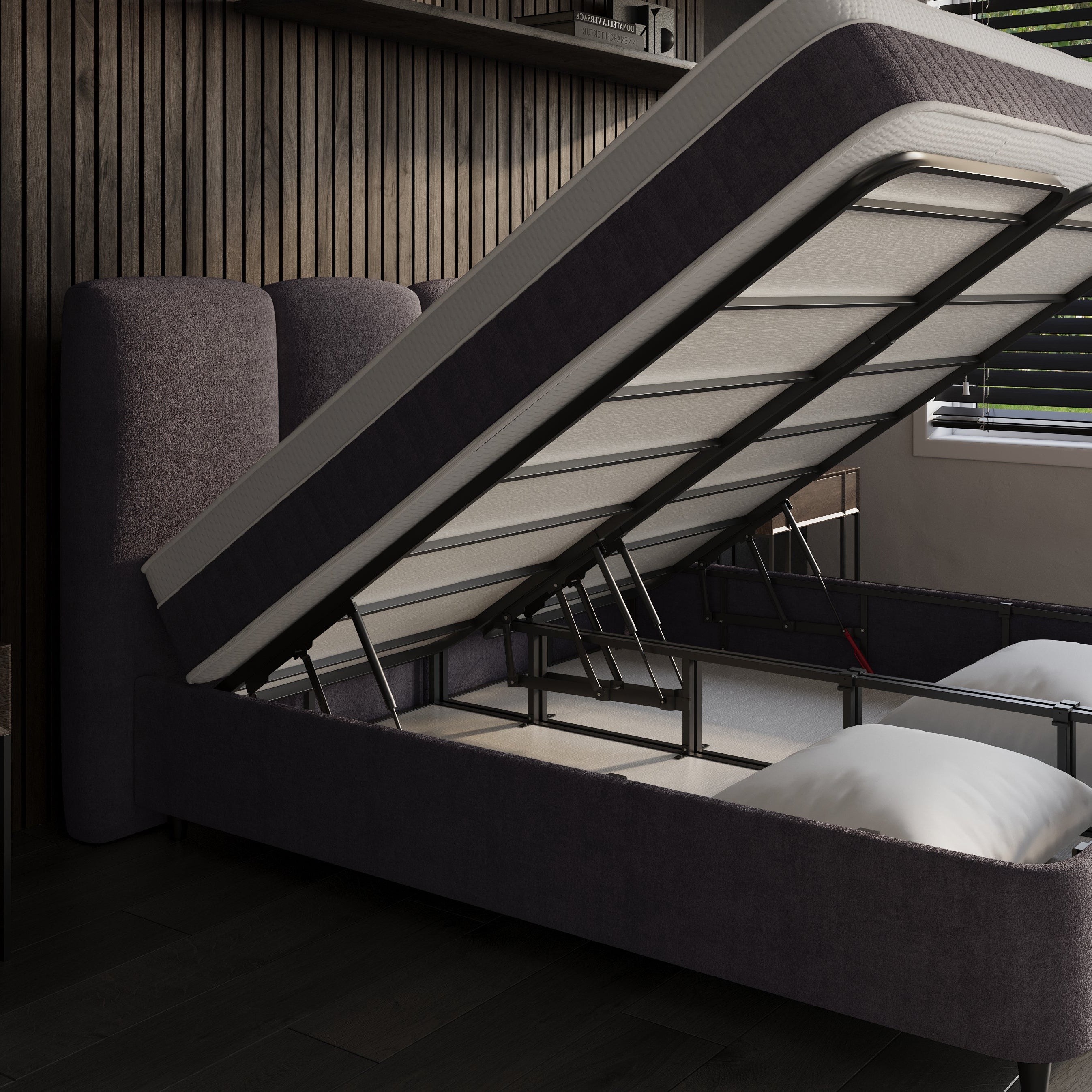 - Royale opbergruimte onder het bed, eenvoudig bereikbaar via de voorkant