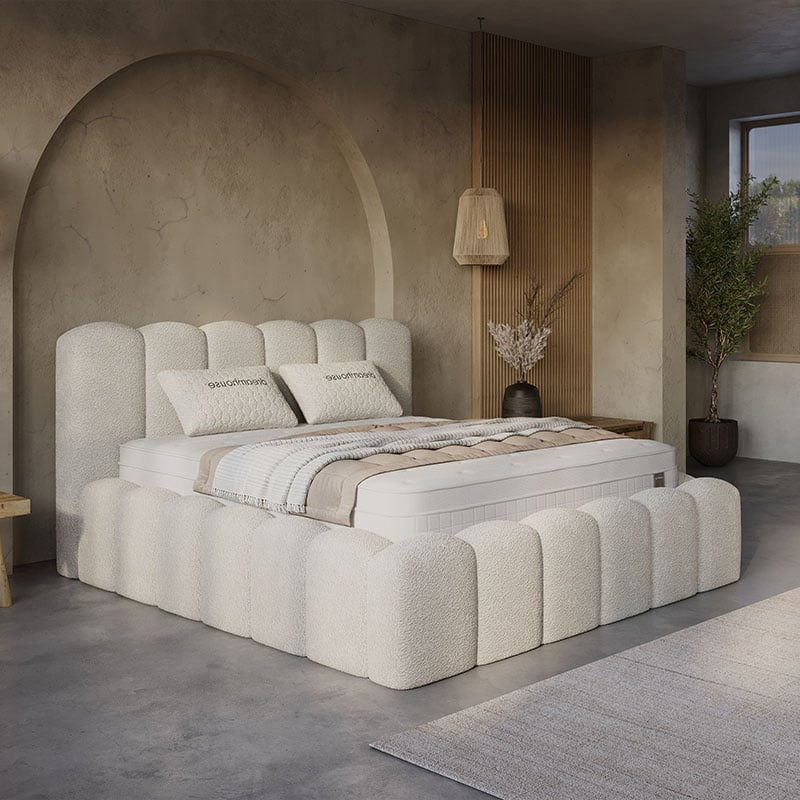 Geniet van ultiem slaapcomfort én extra opbergruimte met de Boxspring met Opbergruimte - Harmony. Deze stijlvolle boxspring in trendy teddy bouclé stof combineert luxe, gemak en een modern design. Ideaal voor wie praktisch wil wonen zonder in te leveren op uitstraling of kwaliteit.