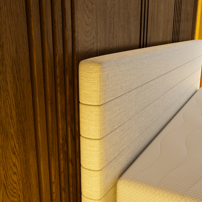 De onderbox van de Hotel Elegance is opgebouwd uit een solide houten kern en afgewerkt voor jarenlang dagelijks gebruik. Het optionele pocketverenmatras met zeven comfortzones verdeelt de druk gelijkmatig en zorgt voor een prettig geventileerd slaapklimaat. Door het matras regelmatig te draaien en te luchten, behoudt het langer zijn vorm en frisheid. De robuuste materialen maken deze boxspring geschikt voor intensief gebruik.