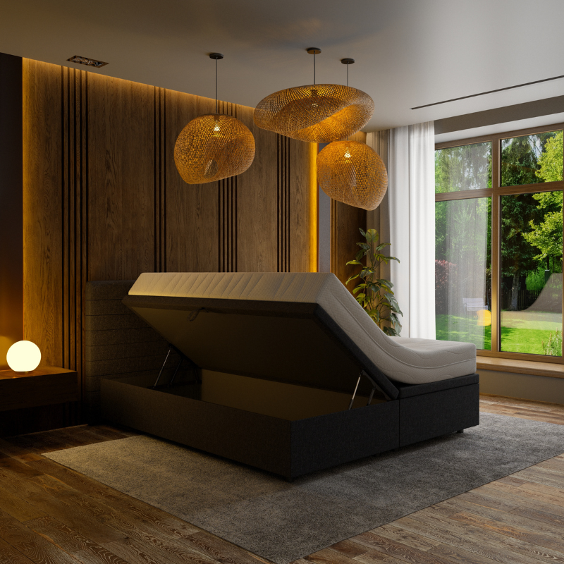 Deze boxspring is ideaal voor iedereen die premium comfort wil combineren met slimme opbergruimte. Perfect voor slaapkamers waar je extra bergruimte nodig hebt voor beddengoed, kleding of seizoensspullen, zonder dat dit ten koste gaat van stijl of ligcomfort.