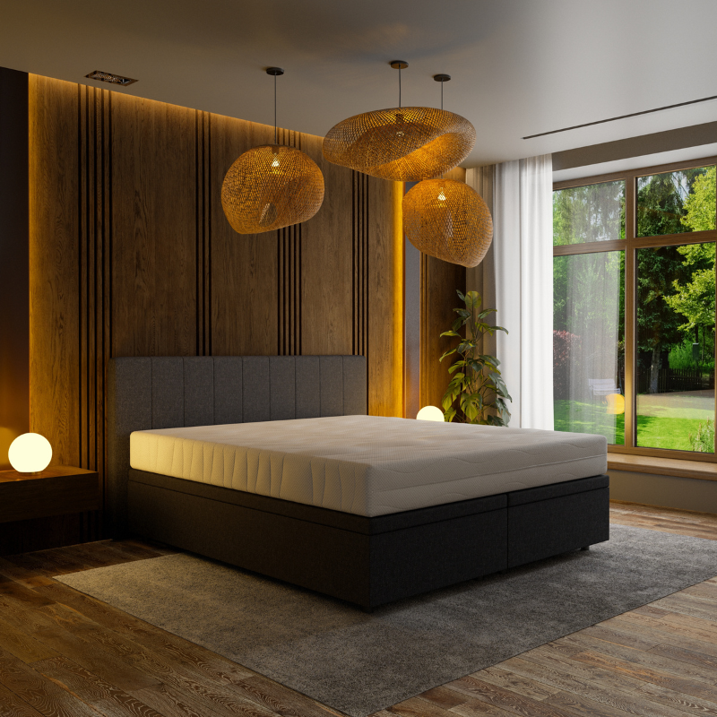 Creëer een opgeruimde, hotelwaardige slaapkamer met de Boxspring met Opbergruimte Hotel Prestige. Deze boxspring combineert royaal ligcomfort met slimme opbergruimte onder het volledige liggedeelte, zodat je beddengoed, kussens of seizoensspullen altijd netjes uit het zicht zijn. Ideaal als je zowel luxe als praktisch gemak zoekt.