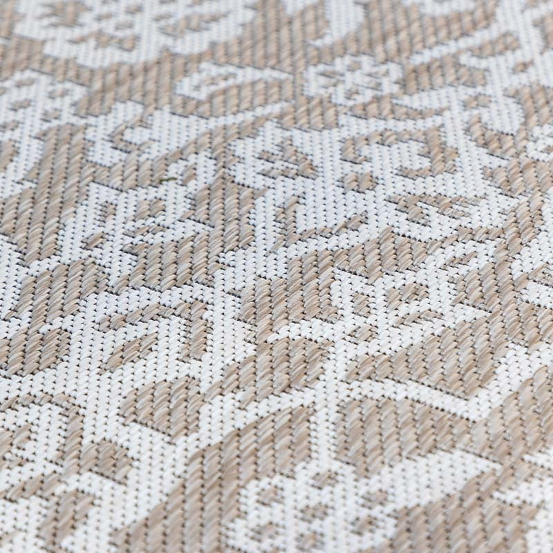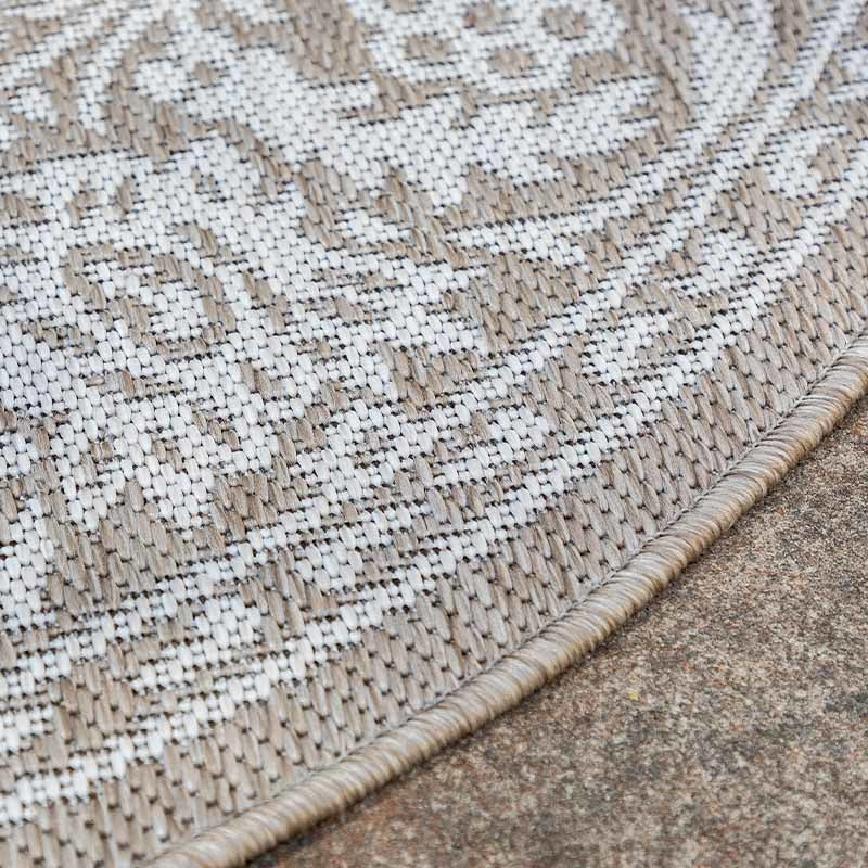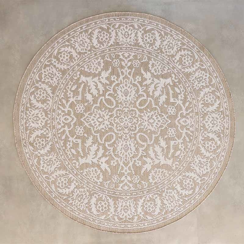 Creëer een sfeervol en knus terras met het ronde Buitenkleed Brunello – Crème.