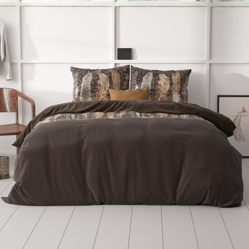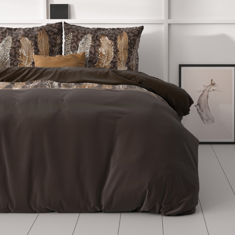 Met het dekbedovertrek Chocolate Feathers kies je voor een tijdloze uitstraling, heerlijk comfort en ultiem gebruiksgemak. Dankzij de praktische drukknoopsluiting en het onderhoudsvriendelijke materiaal geniet je elke nacht van een fris en comfortabel bed.