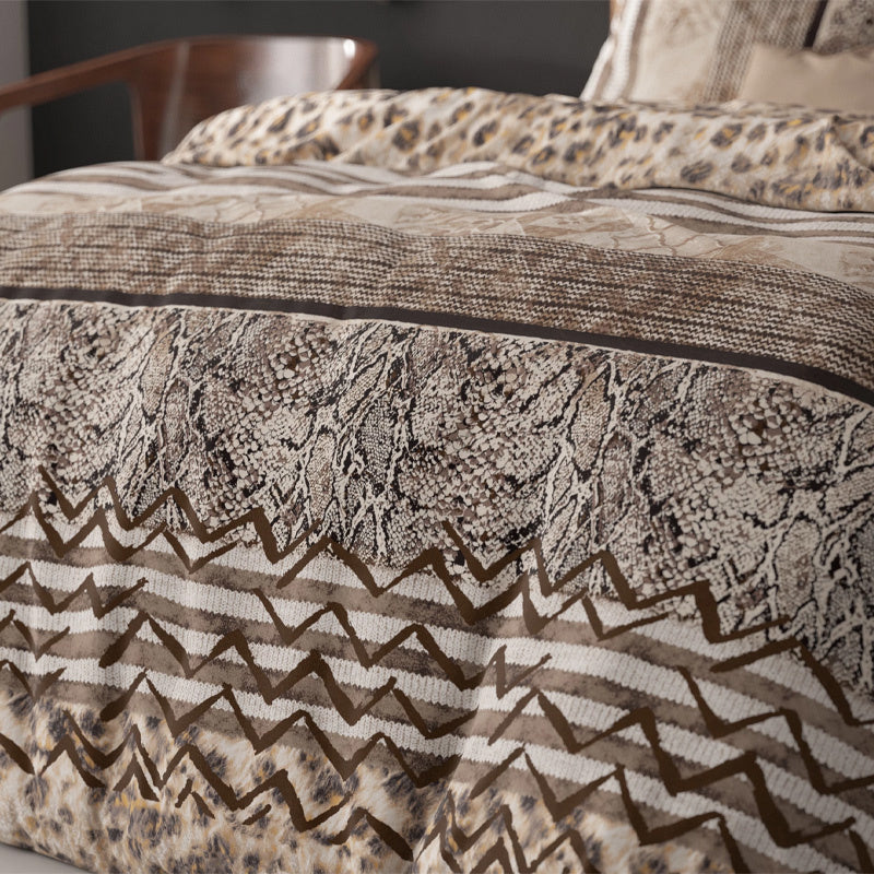 Voeg meer flair toe aan je slaapkamer met dit zachte Sleeptime Elegance Cozy Panther-dekbedovertrek! Het ontwerp heeft een prachtige luipaardprint in een warme kleur, waardoor het overtrek een gezellige uitstraling krijgt. Dit mooie patroon is ook zichtbaar op het kussensloop. Het dekbedovertrek heeft een totale lengte van 220 cm en kan met handige knopen aan de onderkant netjes worden gesloten.