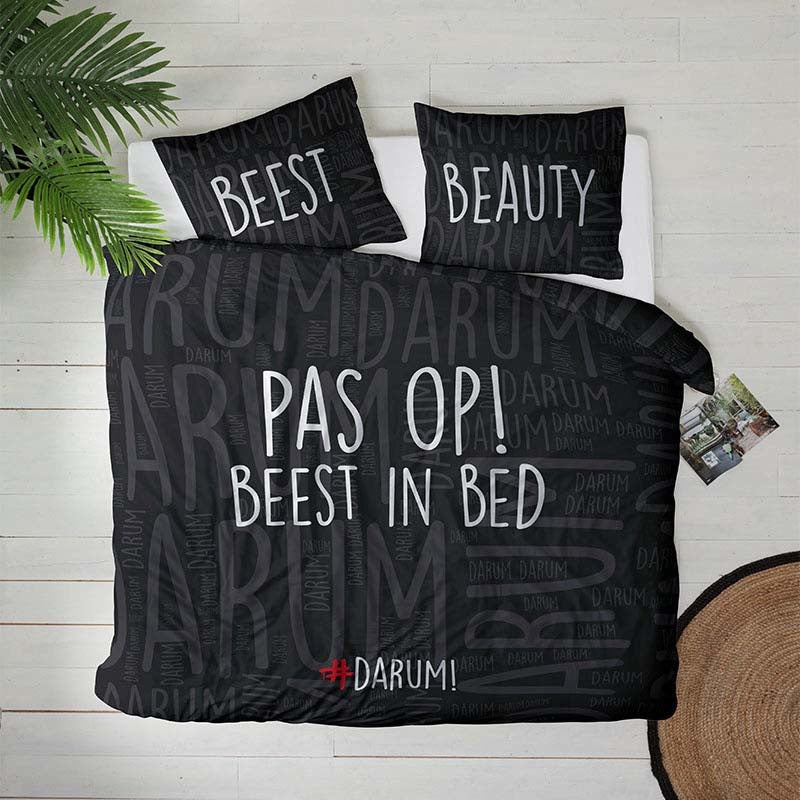 PAS OP! Beest in Bed! Is dit een quote waar jij je wel in kan vinden? Slaap jij als Belle of meer als het beest? Hoe je ook slaapt dit dekbedovertrek is perfect voor jou!