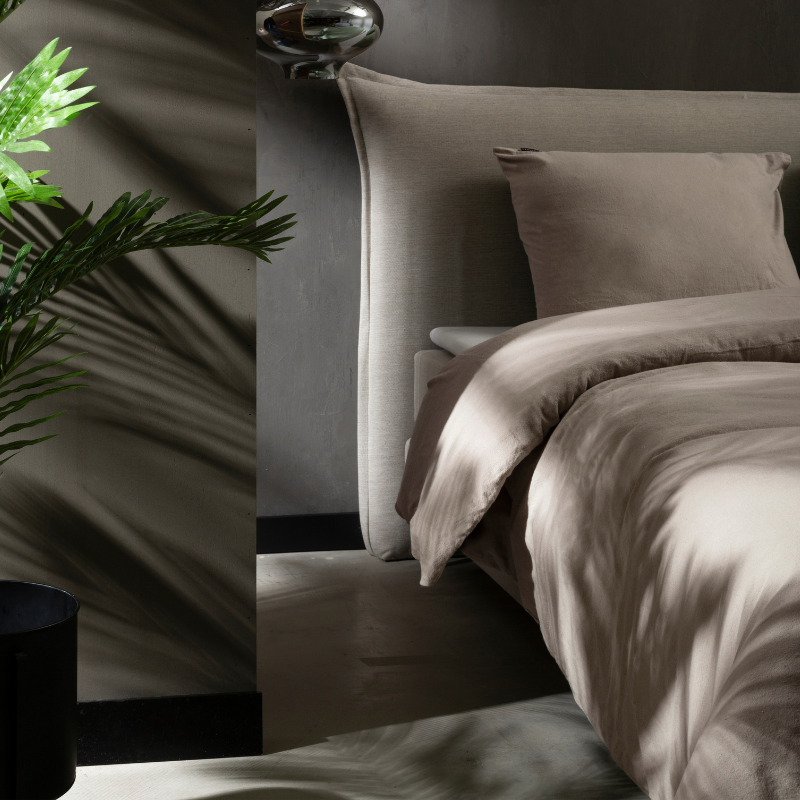 De warme taupetint brengt gezelligheid en rust in je slaapkamer.