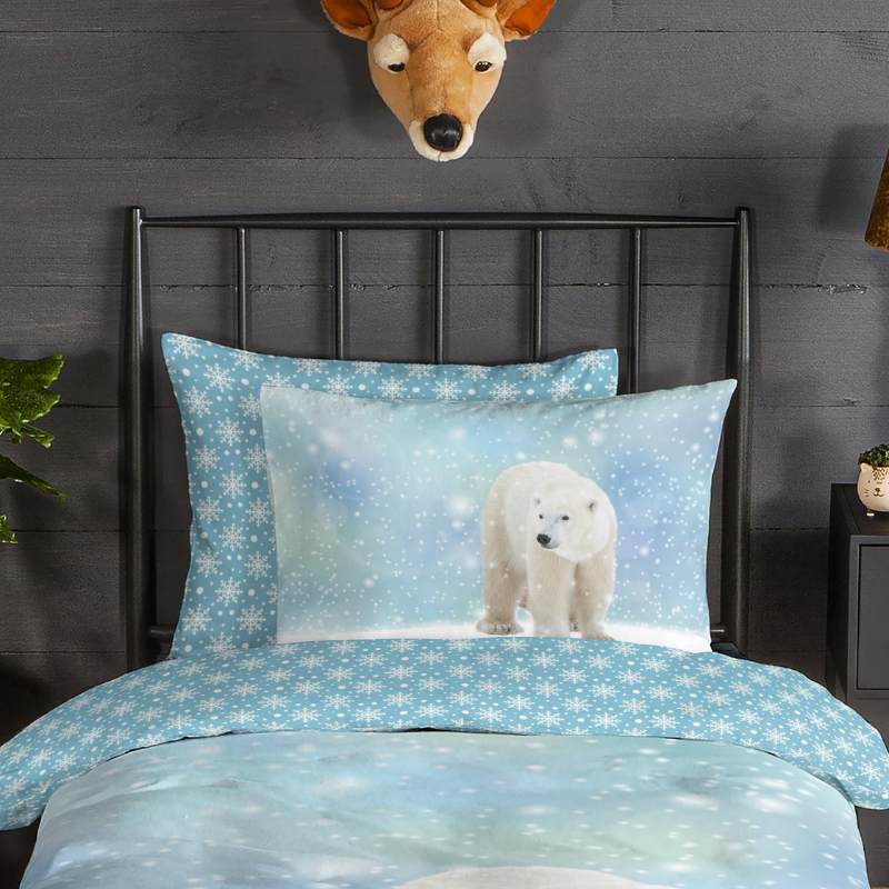 Maak de kinderkamer extra gezellig met het Dekbedovertrek Katoen - Icebear. Dit overtrek is gemaakt van zacht, ademend katoen met een flanellen weving, waardoor het heerlijk warm en comfortabel aanvoelt. Het vrolijke design zorgt direct voor een speelse sfeer.