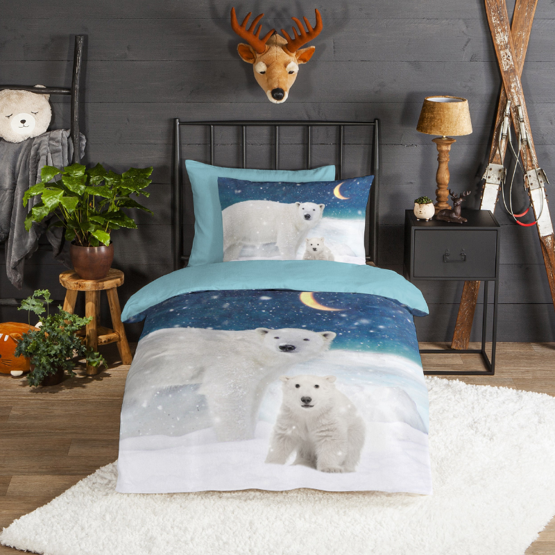 Maak de kinderkamer extra gezellig met het Dekbedovertrek Katoen - Polar. Dit overtrek is gemaakt van zacht, ademend katoen met een flanellen weving, waardoor het heerlijk warm en comfortabel aanvoelt. Het vrolijke design zorgt direct voor een speelse sfeer.