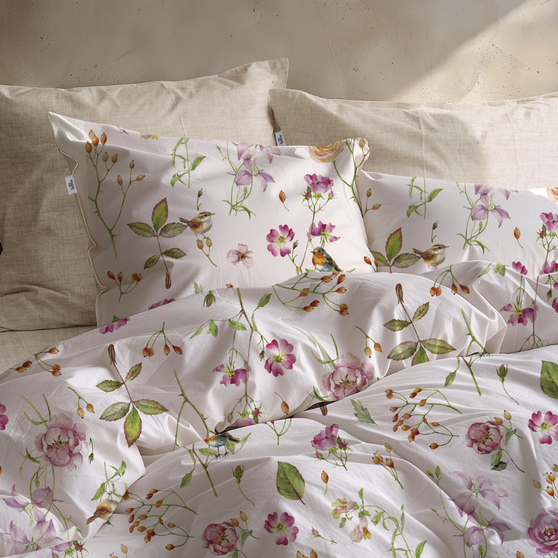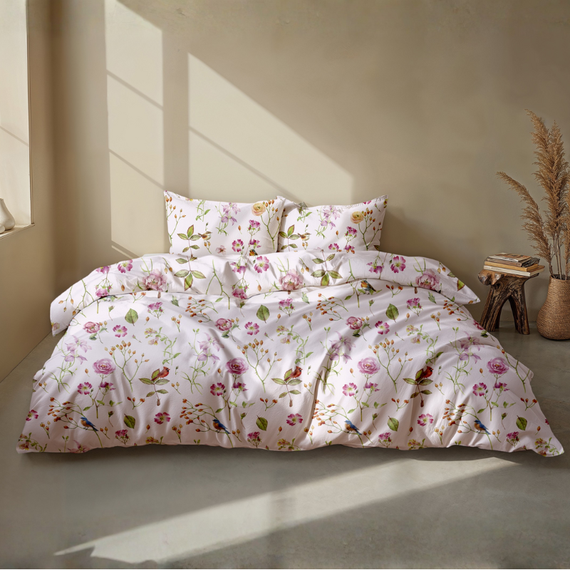 Het dekbedovertrek is vervaardigd uit hoogwaardig katoen. Dit natuurlijke materiaal is ademend, vochtregulerend en voelt heerlijk zacht aan. Je kunt het overtrek wassen op 60°C, de eerste drie keer apart. Geschikt voor de droogtrommel en mag matig heet gestreken worden. Niet bleken of chemisch reinigen.