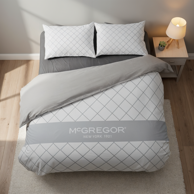 Breng rust en moderniteit in je slaapkamer met het McGregor Illinois dekbedovertrek. Het tijdloze ontwerp en de hoogwaardige katoenen stof zorgen voor een stijlvolle uitstraling én optimaal slaapcomfort. Ideaal voor iedereen die houdt van een frisse, verzorgde look in de slaapkamer.