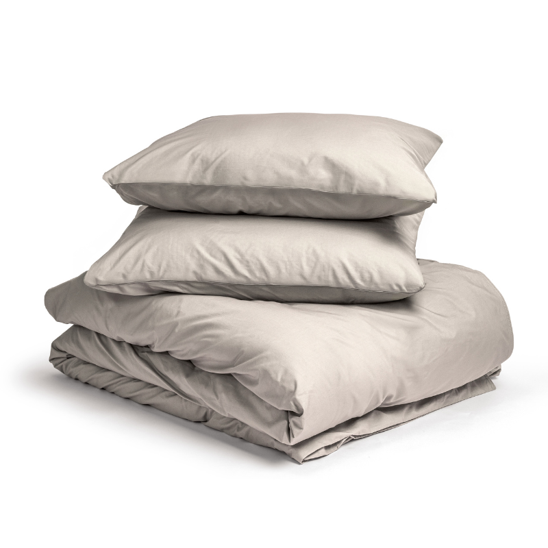 Dekbedovertrek Percale Katoen Uni - Zand/Grijs