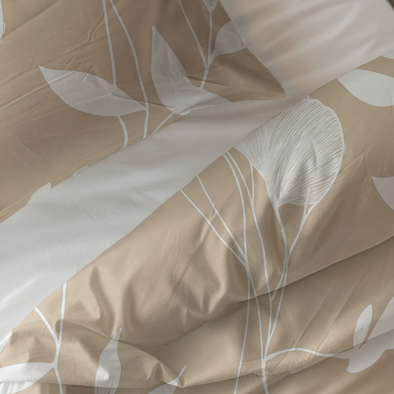 Het dekbedovertrek is gemaakt van hoogwaardig katoen met een draaddichtheid van 128 TC. Dankzij de natuurlijke katoenvezels is het overtrek ademend, stevig en vochtregulerend. Je kunt het wassen op 40°C. Het overtrek is niet geschikt voor de droger en hoeft niet gestreken te worden.