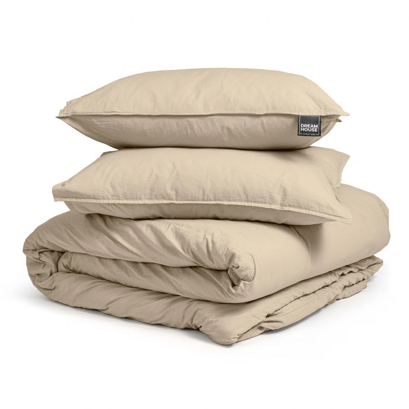 Stone Washed Techniek Het stone washed proces is een unieke techniek waarbij de stof een speciale wasbeurt ondergaat met kleine steentjes of enzymen. Dit zorgt ervoor dat het katoen een verzachte textuur krijgt en dat het dekbedovertrek een vintage uitstraling heeft. Door deze behandeling krijgt de stof ook een licht gevlekte en matte finish, wat de stijlvolle, nonchalante look versterkt. Dreamhouse staat bekend om het gebruik van hoogwaardig katoen, zoals perkal katoen of satijnkatoen. Perkal katoen is strak geweven en heeft een knisperende, maar toch zachte textuur, terwijl satijnkatoen een gladde en luxueuze afwerking biedt. Beide materialen staan bekend om hun duurzaamheid en ademend vermogen.