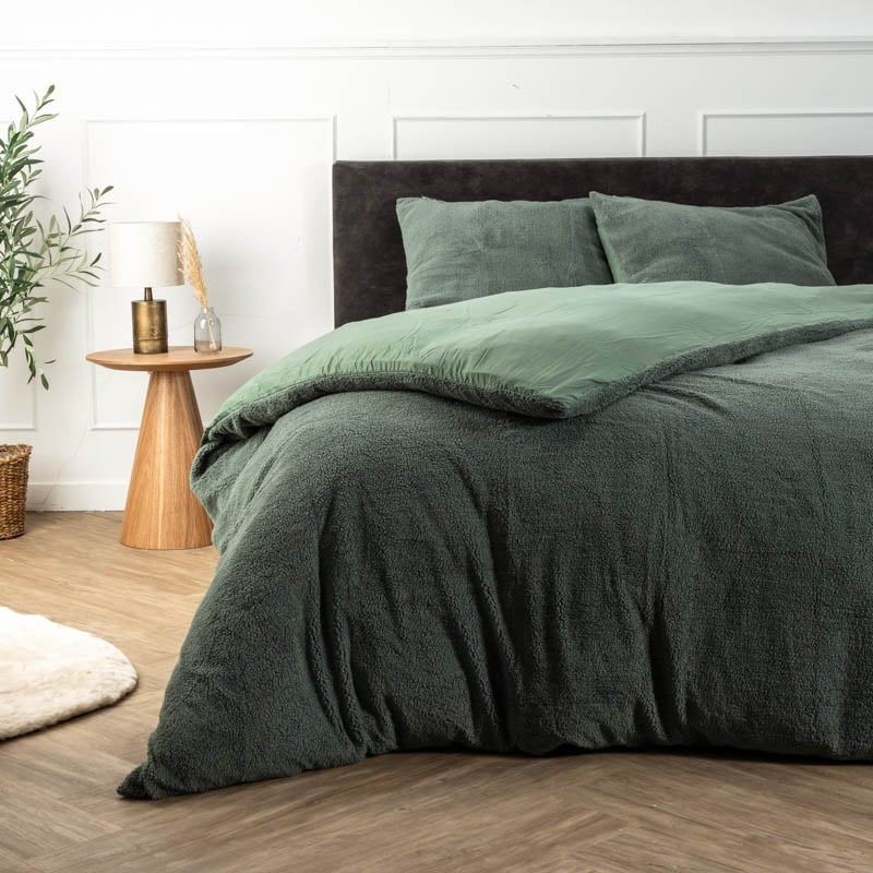 Dit teddy dekbedovertrek is gemaakt van hoogwaardige teddy polyester aan de bovenzijde en een gladde, ademende stof aan de onderzijde. Het voelt fluweelzacht aan en houdt warmte goed vast, terwijl de ademende onderkant ervoor zorgt dat je comfortabel blijft slapen.