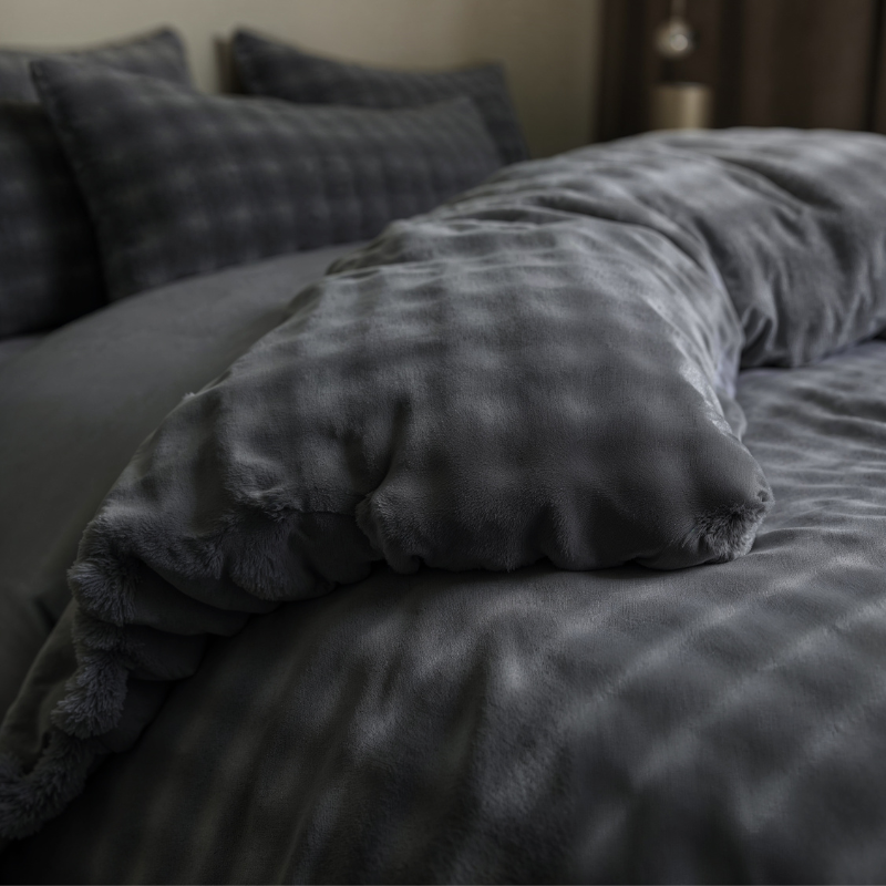 Dekbedovertrek Teddy Pom Pom - Antraciet