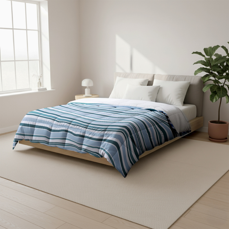 Easy Dekbed Zonder Overtrek - Horizontal Lines - Navy