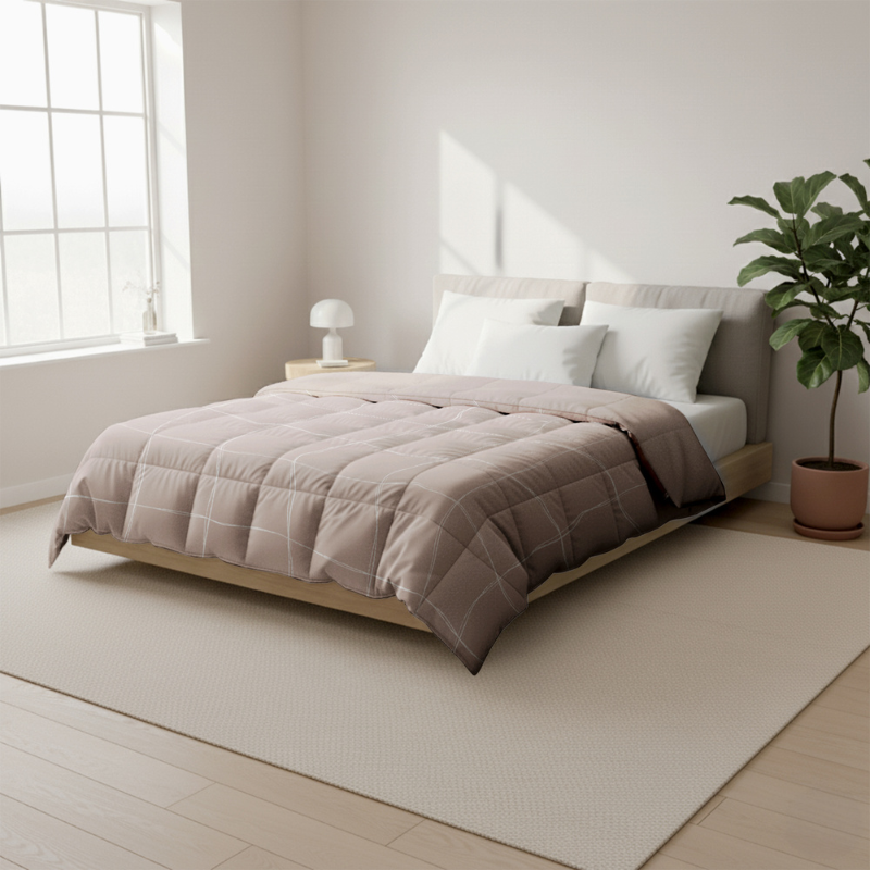 Easy Dekbed Zonder Overtrek - Scribble Squares - Taupe