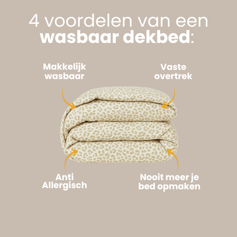 Het dekbed is gemaakt van hoogwaardige microvezel, zowel de tijk als de vulling. Hierdoor voelt het dekbed licht en soepel aan en droogt het snel na het wassen. Je kunt zowel het dekbed als de kussensloop wassen op 40°C, ook zijn deze geschikt voor de droger.