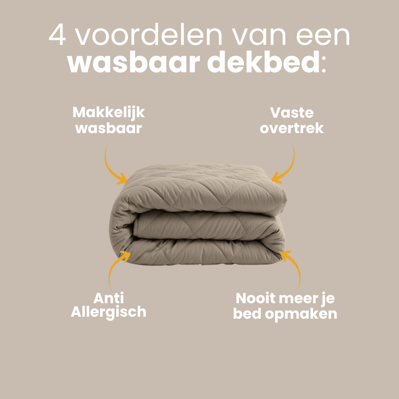 Dit dekbed is ideaal voor iedereen die houdt van gemak, frisheid en comfort. Perfect voor warme nachten, mensen die snel transpireren of wie het bed snel en eenvoudig wil opmaken zonder overtrek.