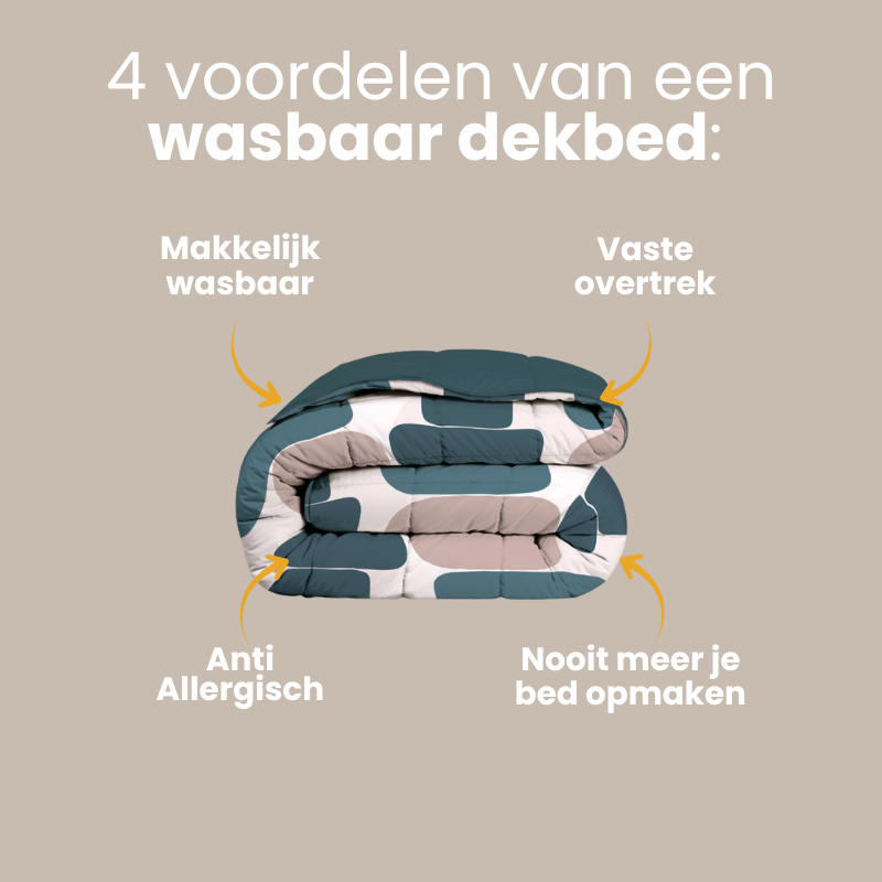 Dit dekbed is direct op het bed te leggen, zonder gedoe met overtrekken. Perfect voor wie snel en gemakkelijk het bed wil opmaken.