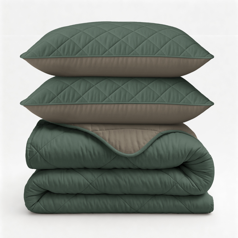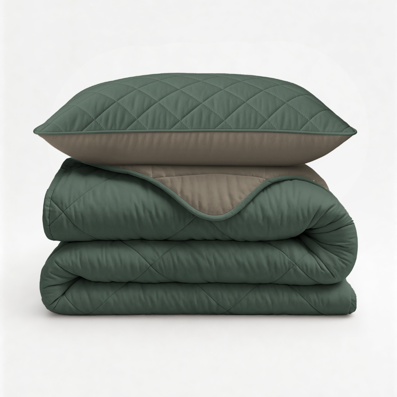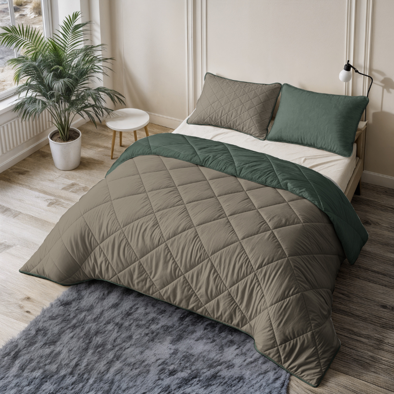 Lazy Dekbed Zonder Overtrek - Double Face - Taupe/Groen