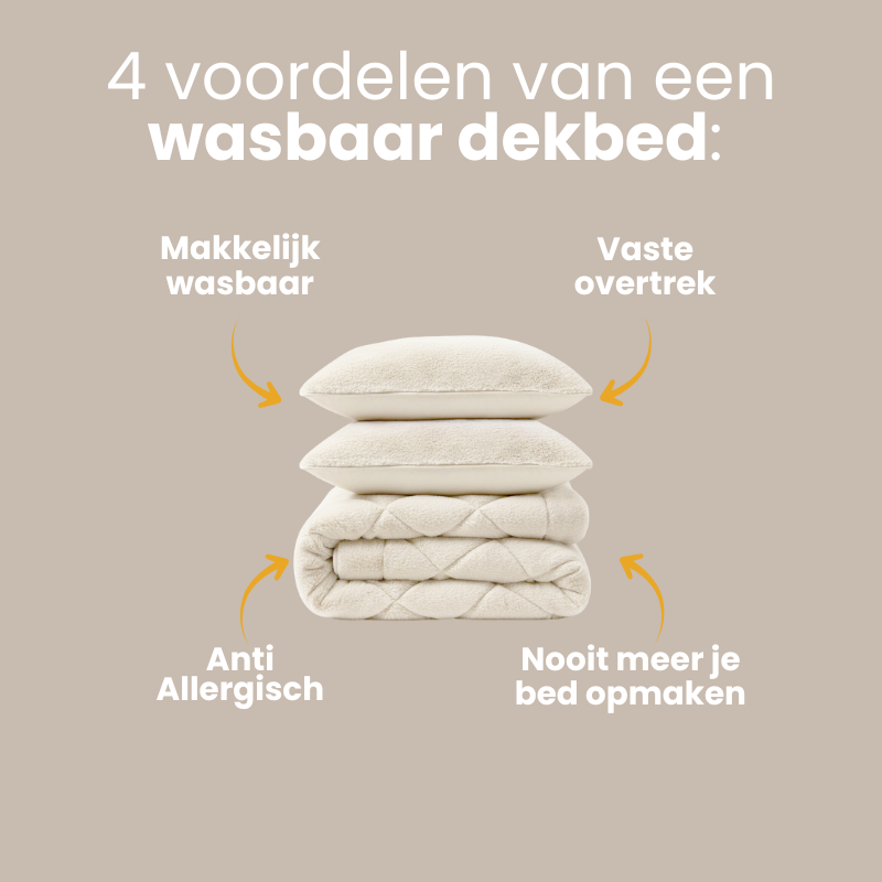 Ook op het gebied van hygiëne biedt een dekbed zonder overtrek duidelijke voordelen. Het volledige dekbed kan in de was, waardoor zweet en bacteriën in één keer worden verwijderd, en doordat je minder wasgoed en textiel nodig hebt, bespaar je ruimte en kosten zonder in te leveren op stijl.