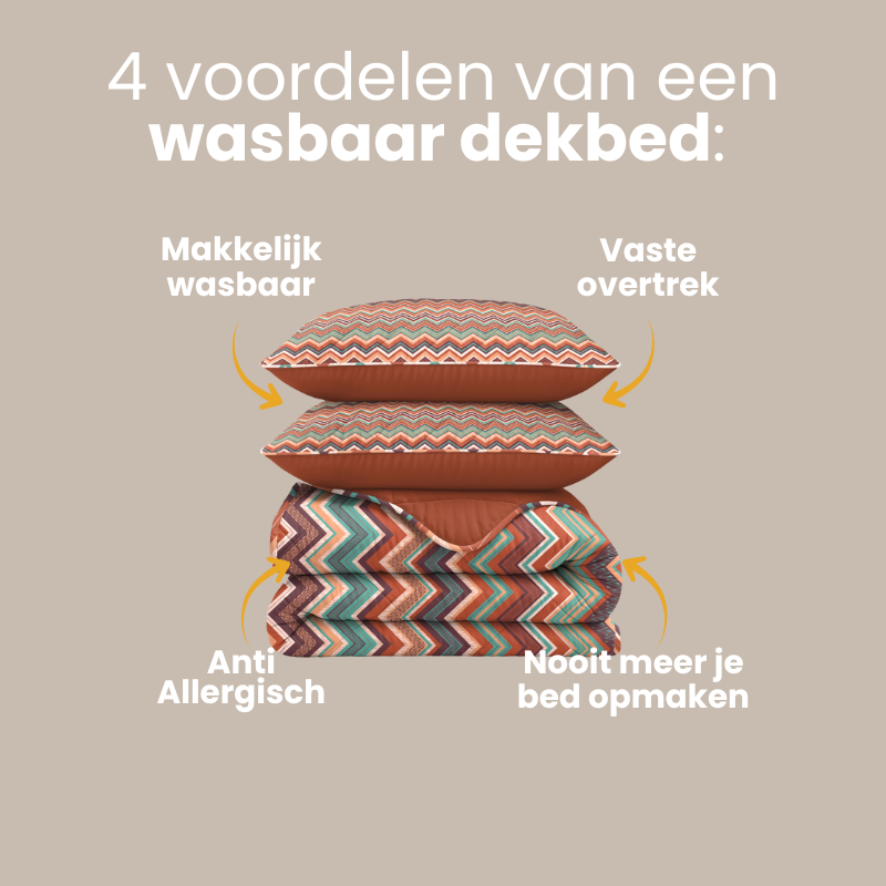 Het Lazy Dekbed is volledig wasbaar en anti-allergisch, waardoor het perfect is voor mensen met allergieën of een gevoelige huid. Het kan eenvoudig op 40°C worden gewassen en is geschikt voor de wasdroger, zodat het snel weer fris op je bed ligt. Dit maakt het ideaal voor dagelijks gebruik en gezinnen die gemak belangrijk vinden. Dankzij de onderhoudsvriendelijke materialen blijft het dekbed hygiënisch en comfortabel in elke situatie.