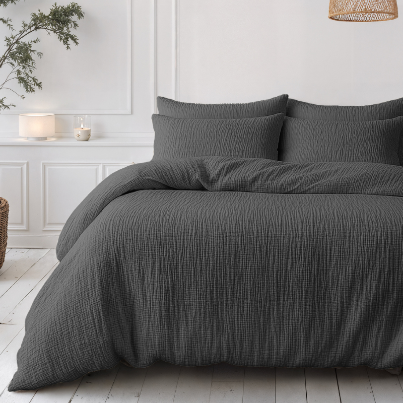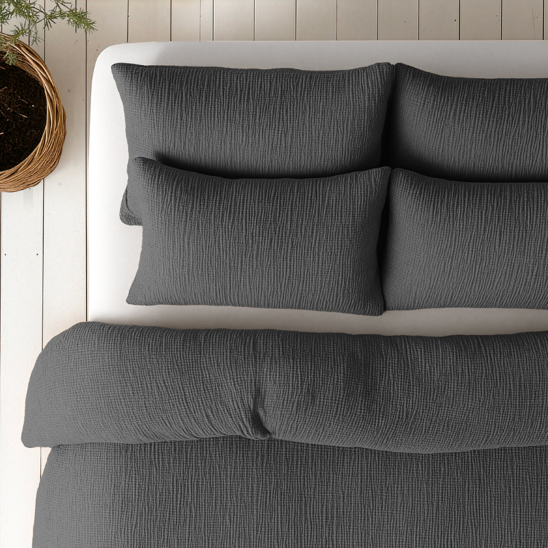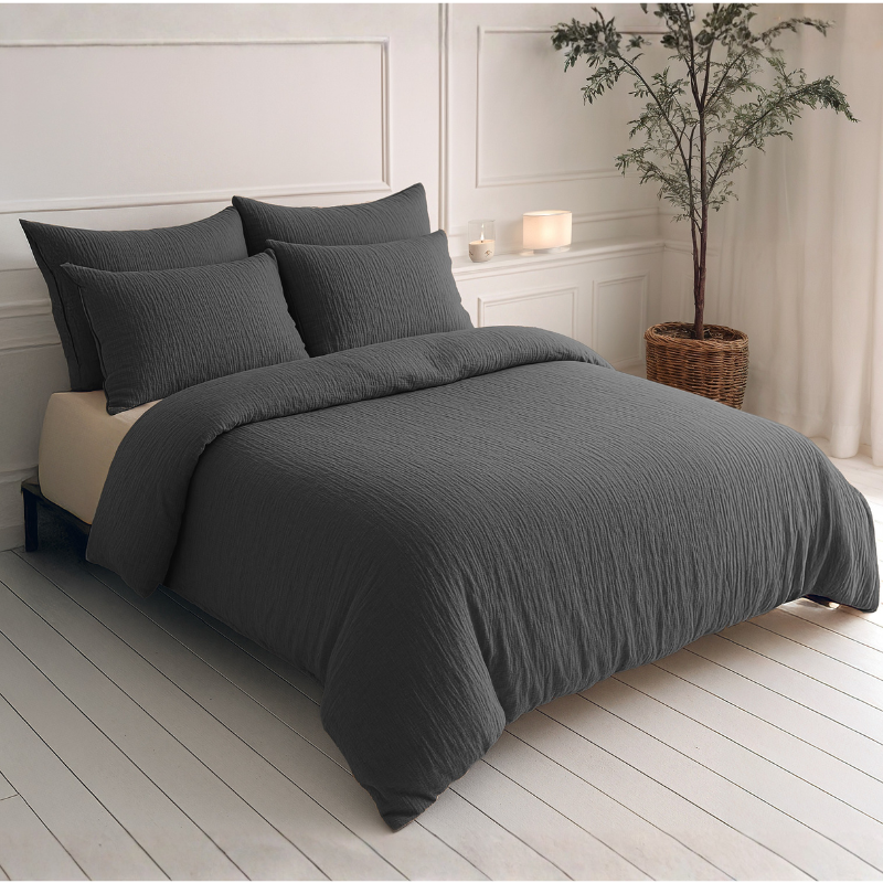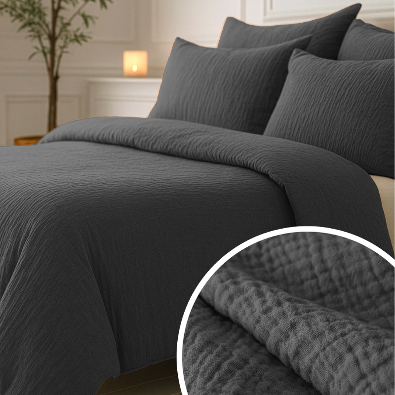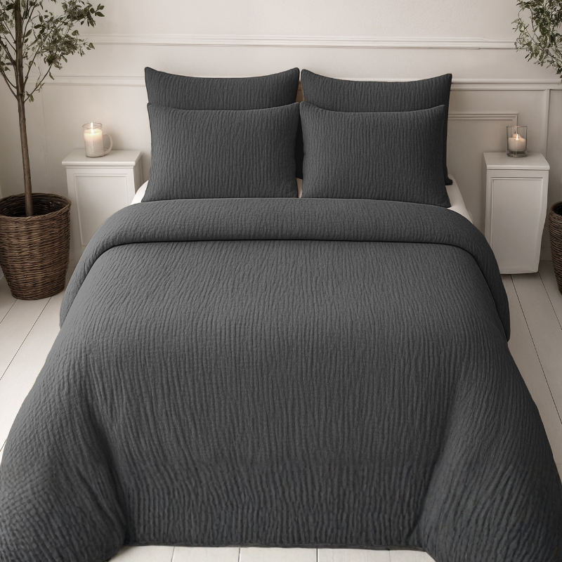 Lazy Dekbed Zonder Overtrek - Katoen Mousseline - Antraciet