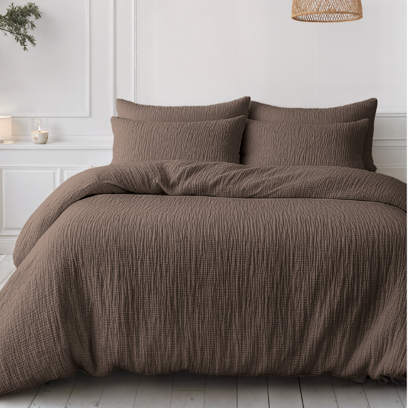 Lazy Dekbed Zonder Overtrek - Katoen Mousseline - Donker Taupe
