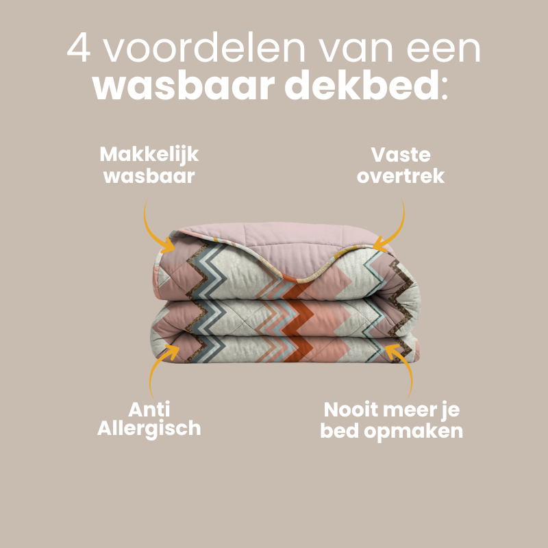 Het Lazy Dekbed is volledig wasbaar en anti-allergisch, waardoor het perfect is voor mensen met allergieën of een gevoelige huid. Het kan eenvoudig op 40°C worden gewassen en is geschikt voor de wasdroger, zodat het snel weer fris op je bed ligt. Dit maakt het ideaal voor dagelijks gebruik en gezinnen die gemak belangrijk vinden. Dankzij de onderhoudsvriendelijke materialen blijft het dekbed hygiënisch en comfortabel in elke situatie.