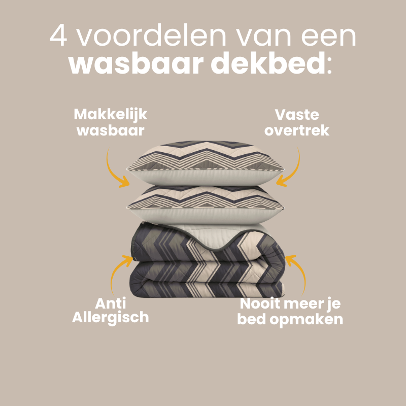 Het Lazy Dekbed is volledig wasbaar en anti-allergisch, waardoor het perfect is voor mensen met allergieën of een gevoelige huid. Het kan eenvoudig op 40°C worden gewassen en is geschikt voor de wasdroger, zodat het snel weer fris op je bed ligt. Dit maakt het ideaal voor dagelijks gebruik en gezinnen die gemak belangrijk vinden. Dankzij de onderhoudsvriendelijke materialen blijft het dekbed hygiënisch en comfortabel in elke situatie.