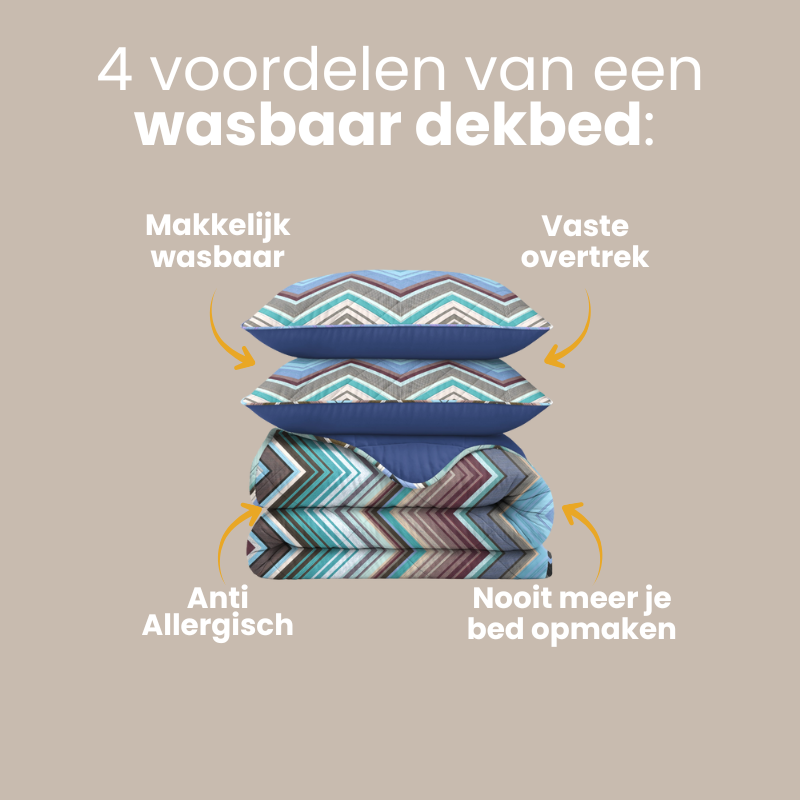 Het Lazy Dekbed is volledig wasbaar en anti-allergisch, waardoor het perfect is voor mensen met allergieën of een gevoelige huid. Het kan eenvoudig op 40°C worden gewassen en is geschikt voor de wasdroger, zodat het snel weer fris op je bed ligt. Dit maakt het ideaal voor dagelijks gebruik en gezinnen die gemak belangrijk vinden. Dankzij de onderhoudsvriendelijke materialen blijft het dekbed hygiënisch en comfortabel in elke situatie.