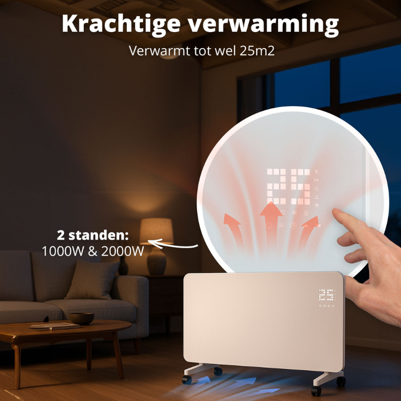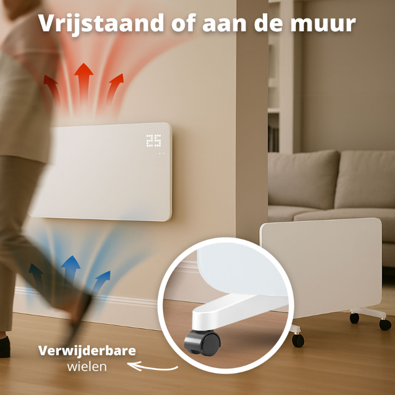 De Slimme Convectie Paneelverwarming combineert kracht, design en slimme technologie voor comfortabele warmte in elke ruimte. Dankzij het elegante glazen paneel en flexibele installatie past deze moderne verwarming naadloos in elk interieur.