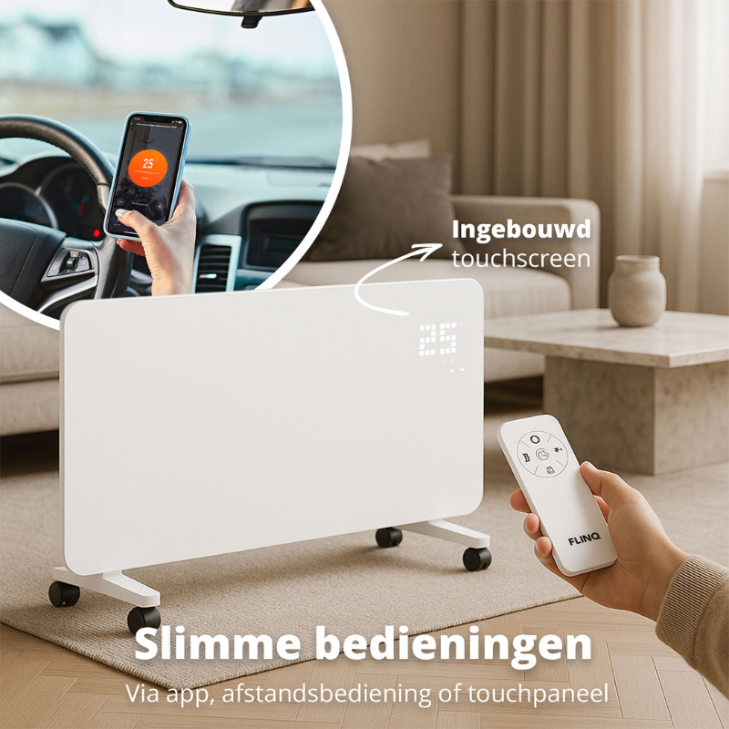 - Bediening via app, afstandsbediening of touchpaneel