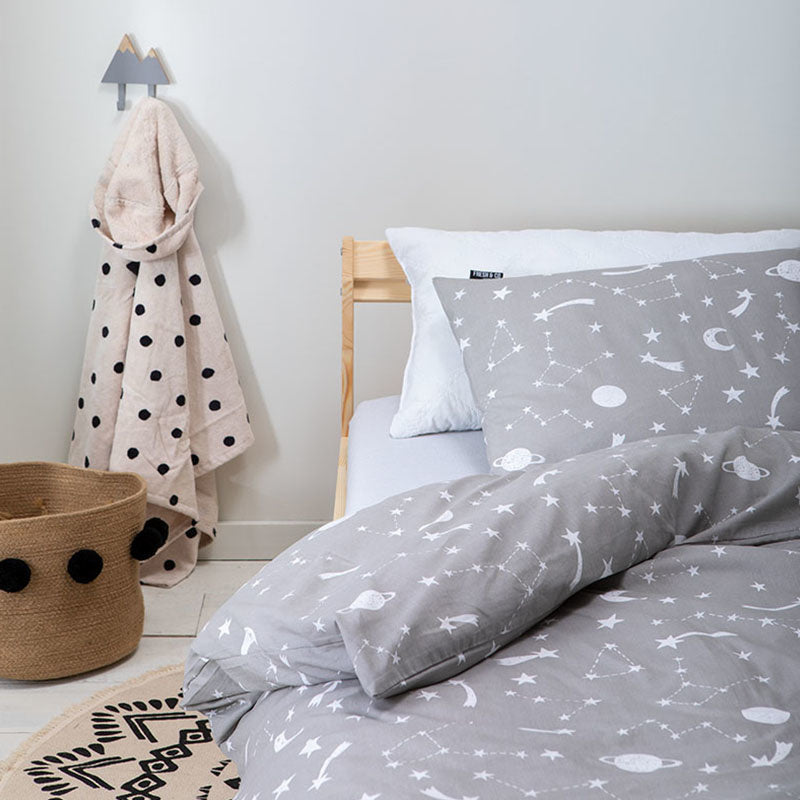 Fleur de slaapkamer van jouw kind op met dit lieve dekbedovertrek vol sterren. Zo droomt je kind elke avond over de mooiste avonturen.
