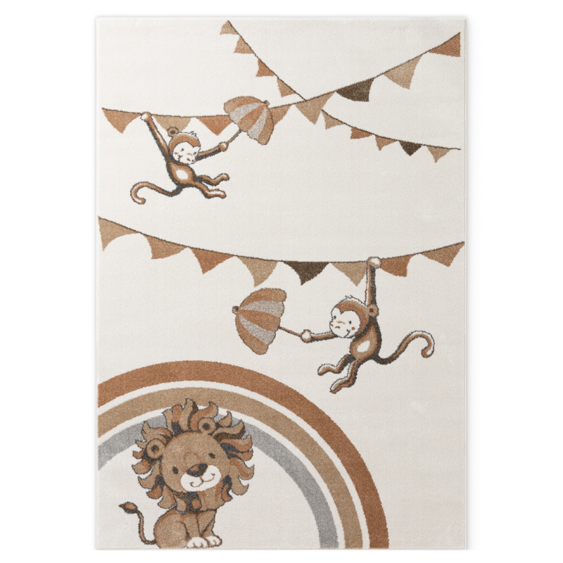 Het Vloerkleed Kids Monkey Party brengt speelse gezelligheid en comfort in elke ruimte. Dankzij het vrolijke design en de zachte structuur creëer je een warme, uitnodigende omgeving waar kinderen zorgeloos kunnen spelen.
