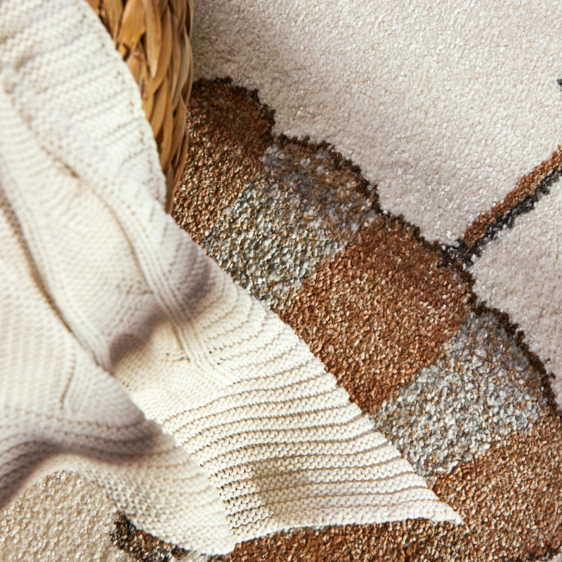 Dit vloerkleed is vervaardigd uit sterke synthetische vezels, waardoor het zacht aanvoelt en bestand is tegen intensief gebruik. Het materiaal is eenvoudig schoon te maken; regelmatig stofzuigen en het verwijderen van vlekken met een vochtige doek volstaan voor een fris resultaat.