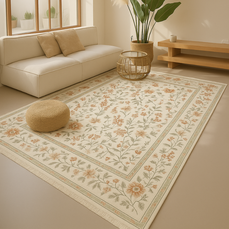 Het Vloerkleed Oriental Flowers – Crème is vervaardigd uit een hoogwaardige mix van 60% viscose en 40% katoen. Deze combinatie zorgt voor een zijdezachte textuur, een subtiele glans en een natuurlijke uitstraling. Het kleed is ademend, soepel vallend en eenvoudig te onderhouden: regelmatig stofzuigen is voldoende. Vlekken kun je voorzichtig verwijderen met een licht vochtige doek. Door het dunne ontwerp is het kleed ideaal voor gebruik op vloerverwarming.