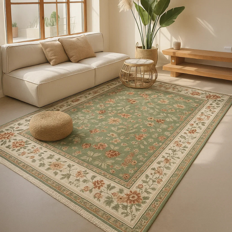 Het Vloerkleed Oriental Flowers – Groen is vervaardigd uit een hoogwaardige mix van 60% viscose en 40% katoen. Deze combinatie zorgt voor een zijdezachte textuur, een subtiele glans en een natuurlijke uitstraling. Het kleed is ademend, soepel vallend en eenvoudig te onderhouden: regelmatig stofzuigen is voldoende. Vlekken kun je voorzichtig verwijderen met een licht vochtige doek. Door het dunne ontwerp is het kleed ideaal voor gebruik op vloerverwarming.