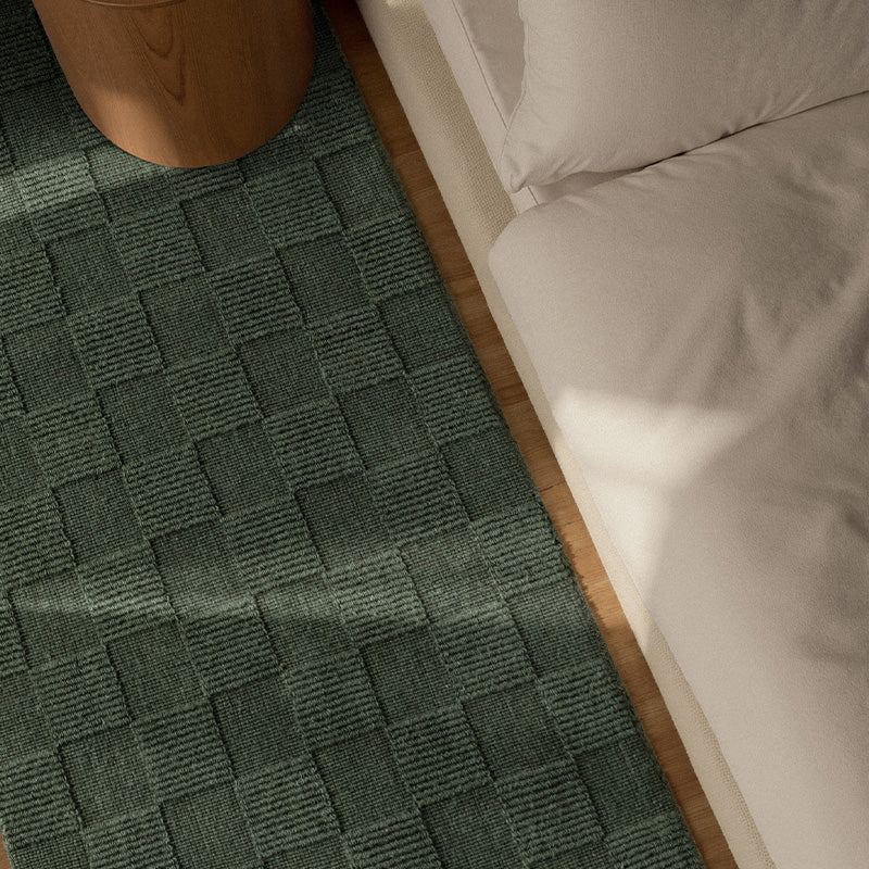 Het Wollen Vloerkleed Scala - Groen brengt klassieke elegantie en warmte in huis dankzij het tijdloze, handgeweven ruitdessin. Dit vloerkleed combineert stijlvol design met natuurlijke functionaliteit en is een verrijking voor elke ruimte.